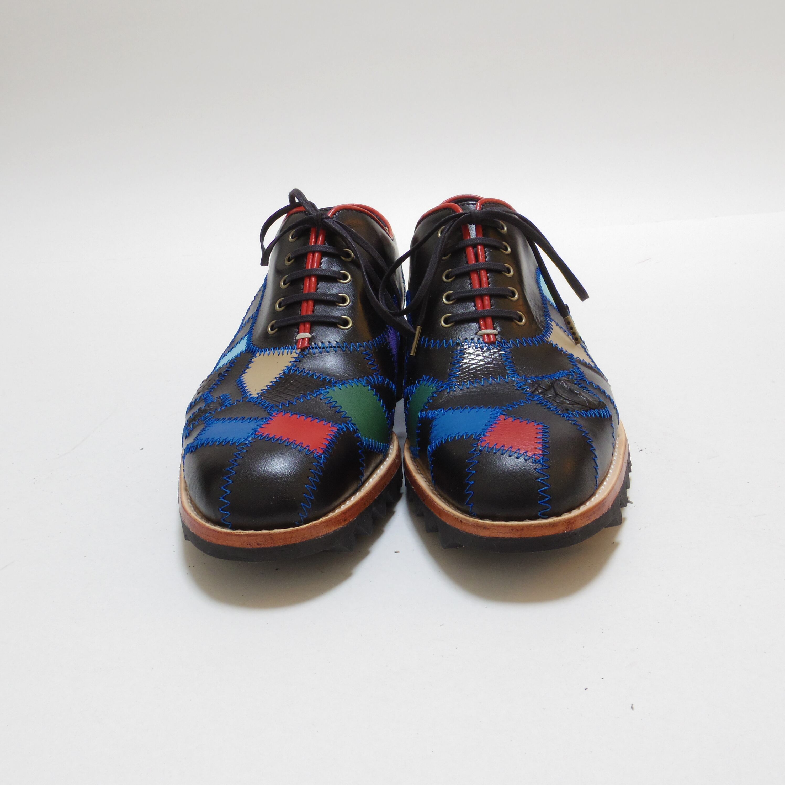 黒をベースに青いステッチ 赤と青の